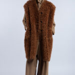 Bomber corto in ecopelliccia con zip centrale, collo e polsini in maglia. Reversibile.
